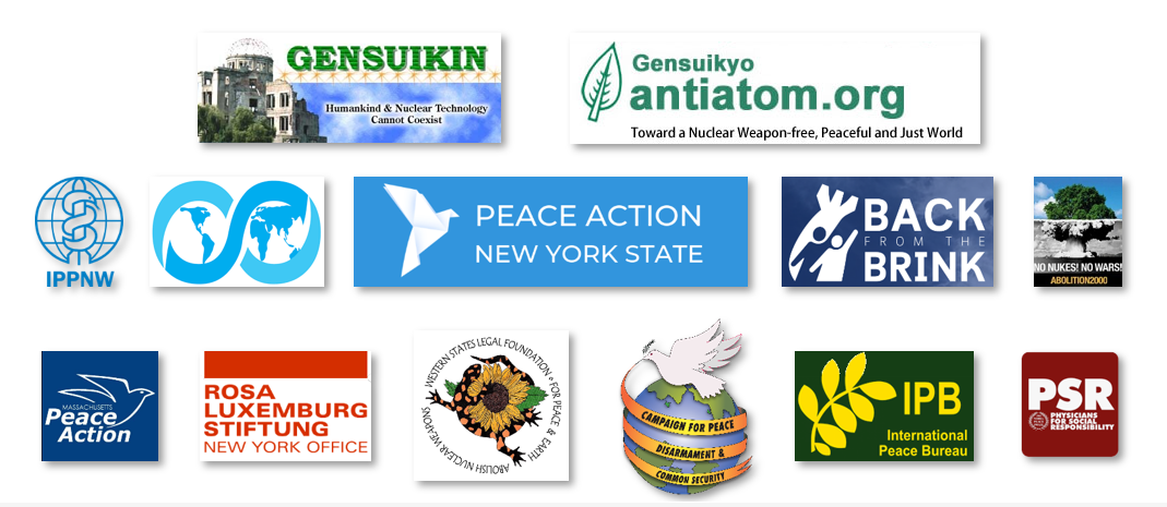 Initiating Organizations include: Abolition 2000; Back from the Brink; Campaign for Peace, Disarmament and Common Security; Gensuikyo (Japan Council against Atomic and Hydrogen Weapons); Nihon Hidankyo (Japanese Confederation of A- & H- Bomb Survivors Organizations; International Peace Bureau; International Physicians for the Prevention of Nuclear War; Peace Action New York State; Massachusetts Peace Action; Physicians for Social Responsibility; Rosa Luxemburg Stiftung;